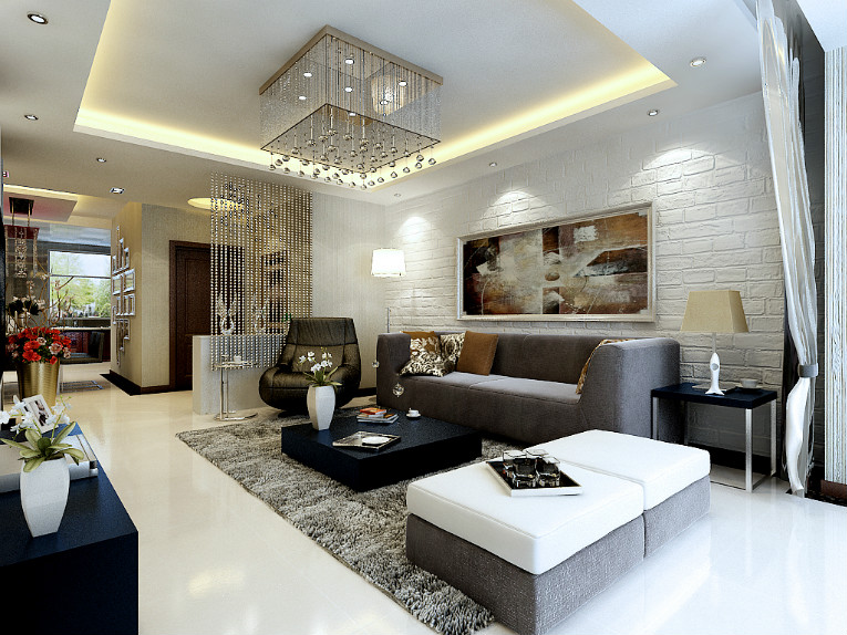為了凸顯空間的大氣與時尚感,設計師運用了大量黑鏡,黑鏡與白色石膏板搭配,使電視背景墻 顯得高檔,直線造型干凈利落,易打理。