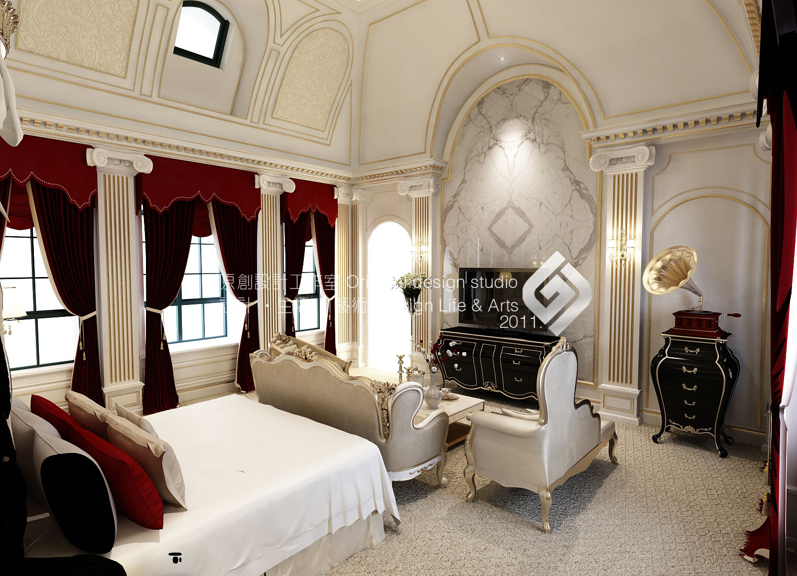 墻面以淺色木作墻板為主,搭配墻紙,營造出一種溫馨又華麗的感覺,地面顏色稍深,配合淺色家具和留金飾品及燈具進一步彰顯貴族風范。