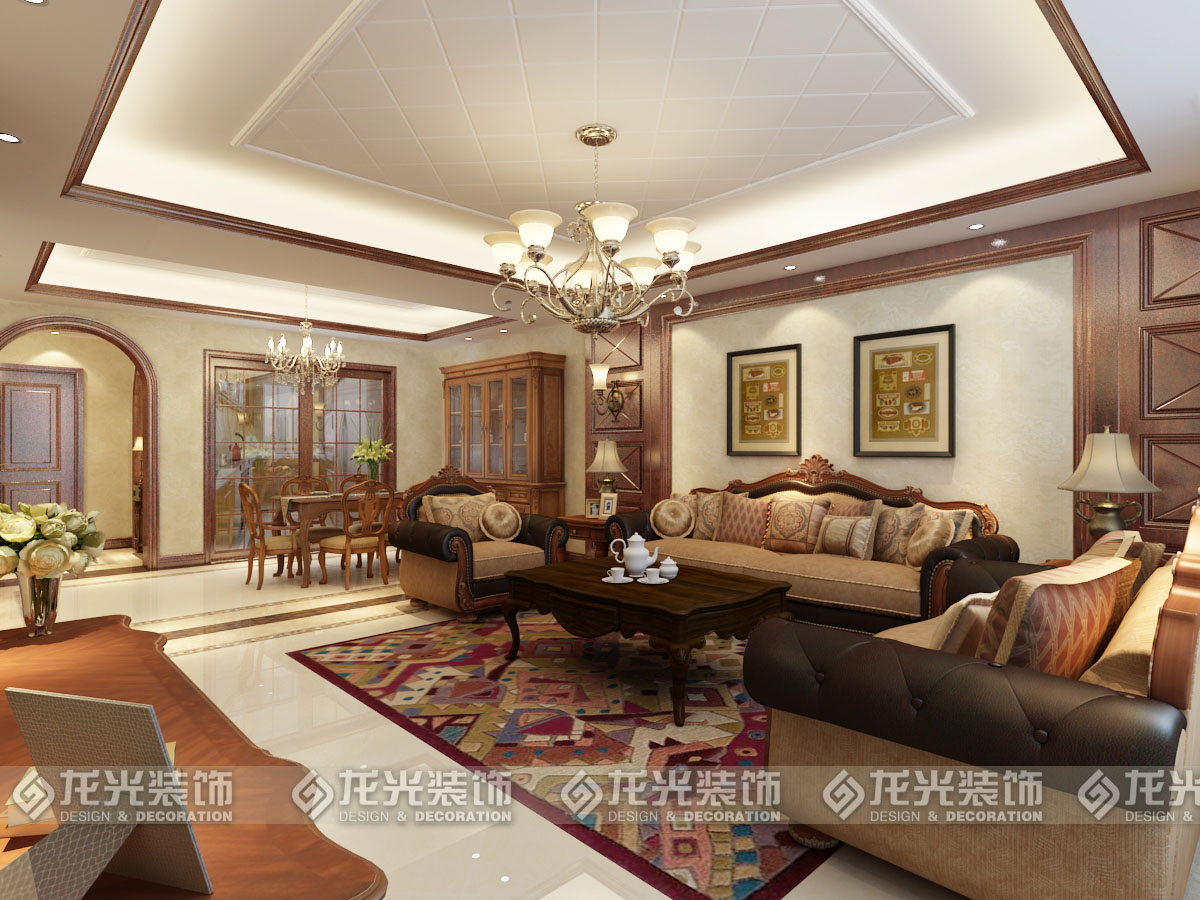 2沙發(fā)的背景墻采用木質(zhì)墻板材質(zhì),使得背景墻更加豐富多彩,和整體風(fēng)格相呼應(yīng)。